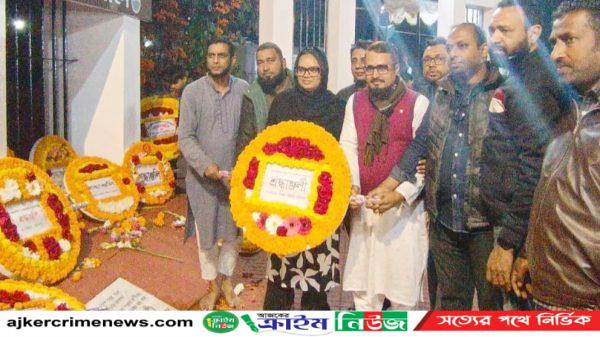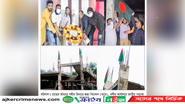 শহীদ মিনারে আওয়ামী লীগের শ্রদ্ধা নিবেদন, পোড়া কার্যালয়ে পতাকা উত্তোলন