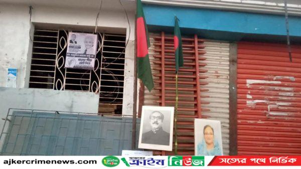 বানারীপাড়ায় আওয়ামী লীগ কার্যালয়ে বঙ্গবন্ধু ও শেখ হাসিনার ছবি সাঁটিয়ে জাতীয় পতাকা উত্তোলন