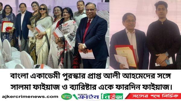 বাংলা একাডেমী সাহিত্য পুরস্কার বিতরণ অনুষ্ঠানে শের-ই বাংলার নাতি রাজুর স্ত্রী ও ছেলে