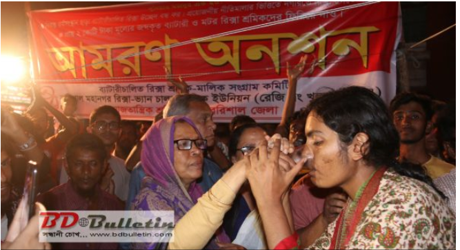 তিনি ও আমরণ অনশন কর্মসূচিতে অংশগ্রহনকারীরা জানান, আমরন অনশনে শ্রমিকদের অনড় অবস্থান দেখে জেলা বাসদের আহবায়ক ইমরান হাবিব রুমন, গণফোরামের জেলা সভাপতি অ্যাডভোকেট হিরন কুমার দাস মিঠু, আনোয়ার জাহিদ, সনাকের সভাপতি অধ্যাপক শাহ-সাজেদা, জেলা মহিলা পরিষদের সাধারণ সম্পাদক পুষ্প চক্রবর্তীসহ একটি প্রতিনিধি দল বরিশাল মেট্রোপলিটন পুলিশের সাথে আজ বৈঠকে বসেন।