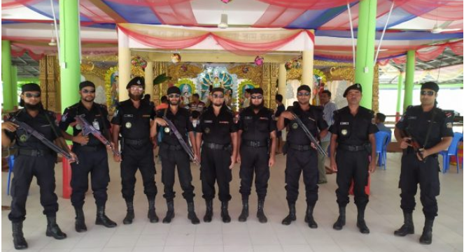 বরিশালে হিন্দু ধর্মাবলম্বীদের প্রধান ধর্মীয় উৎসব শারদীয় দূর্গাপূজা উপলক্ষ্যে র্যাব-৮ এর নিরাপত্তা জোরদার করা হয়ছে। র্যাব-৮ এর পক্ষ থেকে সাদা পোশাকে গোয়েন্দা নজরদারি বৃদ্ধিসহ পূজার পূর্ববর্তী, পূজা চলাকালীন এবং পূজার পরবর্তী সময়ে জনসাধারণ যাতে নির্বিঘ্ন যাতায়াত এবং পূজার আনুষ্ঠানিকতা সম্পন্ন করতে পারে তার জন্য র্যাব-৮ এর দায়িত্বপূর্ণ সকল জেলায় দিবারাত্রি সর্বক্ষণিক সময়ে বিশেষ টহলের মাধ্যমে নিরাপত্তা ব্যবস্থা গ্রহণ করা হয়েছে। ০৪ অক্টোবর ২০১৯ তারিখ ষষ্ঠী পূজার মধ্য দিয়ে আনুষ্ঠানিকভাবে শুরু হয় হিন্দু সম্প্রদায়ের বৃহত্তম ধর্মীয় অনুষ্ঠান দূর্গাপূজা। পাঁচ দিনের এ উৎসব শেষ হবে আগামী ০৮ অক্টোবর ২০১৯ তারিখ মঙ্গলবার প্রতিমা বিসর্জনের মধ্য দিয়ে। হিন্দু সম্প্রদায়ের ধর্মীয় উৎসবের নিরাপত্তা নিশ্চিত করাসহ সার্বিক আইন-শৃঙ্খলা পরিস্থিতি নিয়ন্ত্রণে রাখতে অন্যান্য আইন শৃঙ্খলা রক্ষাকারী বাহিনীর পাশাপাশি র্যাব অত্যান্ত সতর্কতার সাথে নিরাপত্তা দায়িত্ব পালন করছে। পূজা চলাকালীন সময়ে গুরুত্বপূর্ণ পূজা কেন্দ্রে সাদা পোশাকধারী ও টহল দল নিরাপত্তা নিশ্চিতকরনে বিশেষ দায়িত্ব পালন করছে। শারদীয় দূর্গাপূজা উপলক্ষ্যে এই বিশেষ টহল পূজা শেষ না হওয়া পর্যন্ত চলমান থাকবে। পূজা শেষে কর্মস্থানে যাত্রিসাধারন যেন নির্বিঘ্ন পৌছাতে পারে সে জন্য লঞ্চঘাট, ফেরিঘাট ও বাসটার্মিনালে নিরাপত্তায় থাকবে র্যাব সদস্যগণ। সন্দেহভাজন ও কোন প্রকার বিশৃঙ্খলাকারীকে দেখা মাত্রই র্যাবকে অবগত করার জন্য অনুরোধ করেছে র্যাব-৮ ।