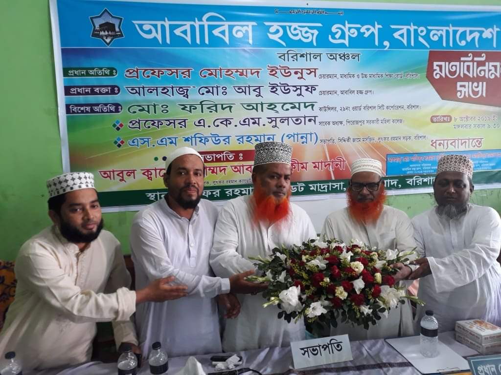 গতকাল রোজ মঙ্গলবার সকাল ১০ টায় অাবাবিল হ্জ্জ গ্রুপের চেয়ারম্যান বরিশালের অাগমন উপলক্ষে জনাব অালহাজ্ব মো: অাবু ইউসুফ স্যারকে শুভেচ্ছা জানান বরিশালের বিভাগের অাবাবিলে পরিচালক হাজি মিজানুর রহামান ও পরিচাল হাজি মো: শামিম হোসেন, এর পর বরিশালের লুতফররহমান সরকের লুতফররহমান ক্যাডেট মাদ্রাসায় হাজিদের সাথে মত বিনিময় অনুষ্ঠান হয়। উক্তঅনুষ্ঠানে অাবাবিলের চেয়ারম্যান সহ ২৯ নং ওয়াডের কাউন্সেলর জনাব ফরিদ অাহাম্দ ও ব্যবস্হপনা সম্পাদক মোসারেফ ভাই। তারা অাবাবিলে হ্জ্জ গ্রুপে প্রসংশা করেন। হাজিরা অাবাবিলে সেবায় অনেক খুশি বলে জানান তারা।