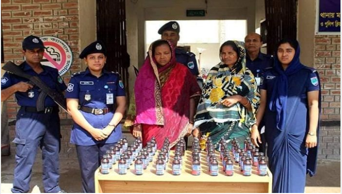 ঝিনাইদহ সদর থানার অফিসার ইনচার্জ (ওসি) মঈন উদ্দিন জানান, গোপন সংবাদের ভিত্তিতে জানতে পারে দুই নারী মাদক ব্যবসায়ী ফেন্সিডিলসহ বাসটার্মিনাল এলাকায় অবস্থান করছে। এমন সংবাদের ভিত্তিতে সদর থানার ওসি (অপারেশন) আবুল খায়ের শেখ ও এস আই ব্রজ বল্লভ সাধু অভিযান চালিয়ে তাদেরকে আটক করে। এসময় তাদের ভেনেটি ব্যাগে তল্লাশি চালিয়ে ৭০ বোতল ফেন্সিডিল উদ্ধার করা হয়।