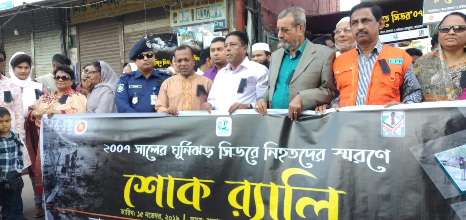 জলিলুর রহমান স্টাফ রিপোর্টার :আজ ভয়াল ১৫ই নভেম্বর। এ দিনটি উপকূলবাসীর সিডর দিবস। ২০০৭ সালের এ দিনে প্রবল শক্তি নিয়ে উপকূলে আঘাত হানে সুপার সাইক্লোন ঘূর্নিঝড় সিডর। এ উপলক্ষে জেলা প্রশাসন ও বরগুনা প্রেসক্লাবসহ সর্বস্তরের মানুষ এ সিডরে নিহতদের স্মরণে শোক র্যালি, শোক সভা ও নিহতের স্মরণে নির্মিত স্মৃতি স্তম্ভে পূষ্পামালা প্রদান করেন।