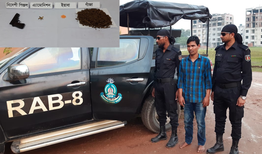বরিশালে র্যাব-৮ এর অভিযানে শীর্ষ সন্ত্রাসী গ্রেফতার, বিদেশী পিস্তল ও মাদক উদ্ধার।