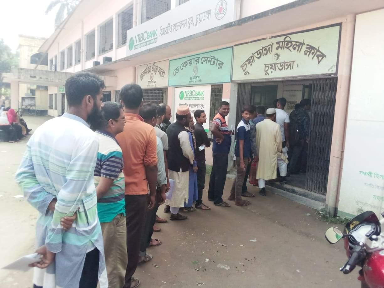 সড়ক পরিবহনে নতুন আইন পাশ ও শাস্তির মেয়াদ এবং জরিমানার হার বৃদ্ধিতে চুয়াডাঙ্গা বিআরটিএ অফিসে ড্রাইভিং লাইসেন্সের জন্য মানুষের উপচে পড়া ভিড় দেখা গেছে। এছাড়া অফিসের পাশেই ব্যাংকে লাইন ধরে মানুষ টাকা জমা দিচ্ছেন। বিআরটিএ চুয়াডাঙ্গা অফিসের সামনে ড্রাইভিং লাইসেন্স আর রেজিস্ট্রেশনের জন্য শত শত মানুষ ভিড় দেখা যায়। সড়ক পরিবহনে নতুন আইন পাশ এবং অনেক হারে জরিমানা বাড়ায় বিআরটিএ আফিসে ভিড় করছে সাধারণ মানুষ। তাছাড়া ড্রাইভিং লাইসেন্স ছাড়া গাড়ির রেজিস্ট্রেশন হবে না এ কারণে ড্রাইভিং লাইসেন্স আবেদনকারীর সংখ্যা বেড়েছে অনেক গুণ। গত শুক্রবার থেকে কার্যকর হয়েছে বহুল আলোচিত সড়ক পরিবহন আইন। এই আইনে সড়কে নিয়ম ভঙ্গের জরিমানা বেড়েছে কয়েকগুণ থেকে হাজার গুণ পর্যন্ত। ড্রাইভিং লাইসেন্স কিংবা ফিটনেসে সনদ না থাকলে সর্বোচ্চ ২৫ হাজার টাকা পর্যন্ত জরিমানার বিধান রয়েছে নতুন আইনে। সেই সঙ্গে ছয় মাস পর্যন্ত কারাদণ্ডও হতে পারে। আগে এ অপরাধের জরিমানা ছিল মাত্র ৫০০ টাকা। এ ব্যাপারে চুয়াডাঙ্গা বিআরটিএ কার্যালয়ের মটরযান পরিদর্শক মোঃ রফিকুল ইসলাম জানান নতুন সড়ক পরিবহন আইনে জরিমানার পরিমাণ বেড়ে যাওয়ায় মোটরসাইকেলসহ হালকা যানবাহনের লাইসেন্স পেতে ভিড় বেড়েছে। ড্রাইভিং পরীক্ষার ব্যাপারে জিজ্ঞাসা করলে মটরযান পরিদর্শক মোঃ রফিকুল ইসলাম বলেন এখন সপ্তাহে ১ থেকে ২ দিন পরীক্ষা নেয়া হচ্ছে। কিন্তু চাপ বাড়ার কারণে ২০২০ সালের জানুয়ারি মাস থেকে এই পরীক্ষা সপ্তাহে ৩/৪ দিন নেয়ার সিদ্ধান্ত নেয়া হবে। চুয়াডাঙ্গা ট্রাফিক ইন্সপেক্টর মোঃ শাহাবুদ্দিন জানান শুধু মটরসাইকেল চালক নয় অন্য আরোহীকেও হেলমেট ব্যবহার করতে হবে। তা না হলে আরোহীও একই দণ্ডে দণ্ডিত হবেন। তিনি আরও জানান নতুন আইন কার্যকর হওয়ায় বৈধ কাগজপত্র ও ড্রাইভিং লাইসেন্স ছাড়া অনেকে যানবাহন চালানো থেকে বিরত থাকছেন। রাস্তায় মোটরসাইকেলের সংখ্যা অনেক কমেছে।