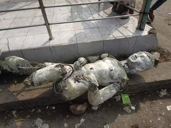 অনলাইন ডেস্ক::ঝালকাঠির নলছিটিতে গতকাল রাতে ষাইটপাকিয়া বাজারে মুক্তিযুদ্ধের স্মৃতিস্তম্ভের মুক্তিযোদ্ধাদের ভাস্কর্য ও বঙ্গবন্ধুর ভাস্কর্য ভেঙ্গে চুরমার করে খালে ফেলে দিয়েছে দুর্বৃত্তরা। নলছিটি থানা পুলিশ ঘটনাস্থল পরিদর্শন করেছেন।