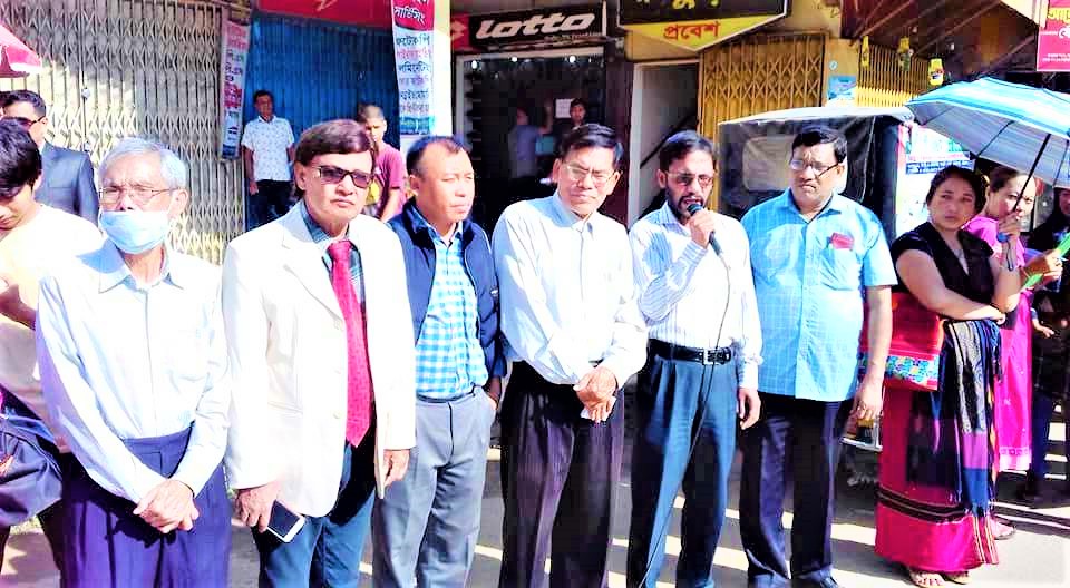 ২৫নভেম্বর খাগড়াছড়ি জেলা সদর শাপলা চত্বরে ‘নারী ও শিশু ধর্ষণ এবং সকল যৌন সহিংসতার বিরুদ্ধে আমরা’’ পরিচয়ে মানববন্ধন ও সংক্ষিপ্ত সমাবেশে স্থানীয় বেসরকারি সংস্থা কাবিদাং এর নির্বাহী পরিচালক ও টিআইবি-খাগড়াছড়ি সনাকের সদস্য লালসা চাকমার সভাপতিত্বে ও দি কার্টার সেন্টারের তথ্যবন্ধু ও ট্রেনিং অফিসার গিতিকা ত্রিপুরার সঞ্চালনায় এতে বক্তব্য রাখেন খাগড়াছড়ি নারী ও শিশু নির্যাতন প্রতিরোধ মঞ্চের সাধারণ সম্পাদক ও সাংবাদিক আবু দাউদ, সচেতন নাগরিক কমিটি (সনাক)খাগড়াছড়ির সদস্য অংসুই মার্মা, খাগড়াপুর মহিলা কল্যাণ সমিতির প্রতিনিধি কাজল বরন ত্রিপুরা, ত্রিপুরা স্টুডেন্টস্ ফোরামের খাগড়াছড়ি সদর শাখার সভাপতি ও দৈনিক প্রতিদিনের চিত্র পত্রিকার খাগড়াছড়ি জেলার প্রতিনিধি দহেন বিকাশ ত্রিপুরা, বাংলাদেশ মারমা স্টুডেন্টস্ কাউন্সিলের খাগড়াছড়ি জেলা কমিটির সাধারণ সম্পাদক নিঅংগ্য মারমা, খাগড়াছড়ি সনাকের ইয়েস প্রতিনিধি নিশি ত্রিপুরা প্রমূখ। এসময় দিবসটি উপলক্ষে বক্তারা বিভিন্ন দাবি তুলে ধরেন।
