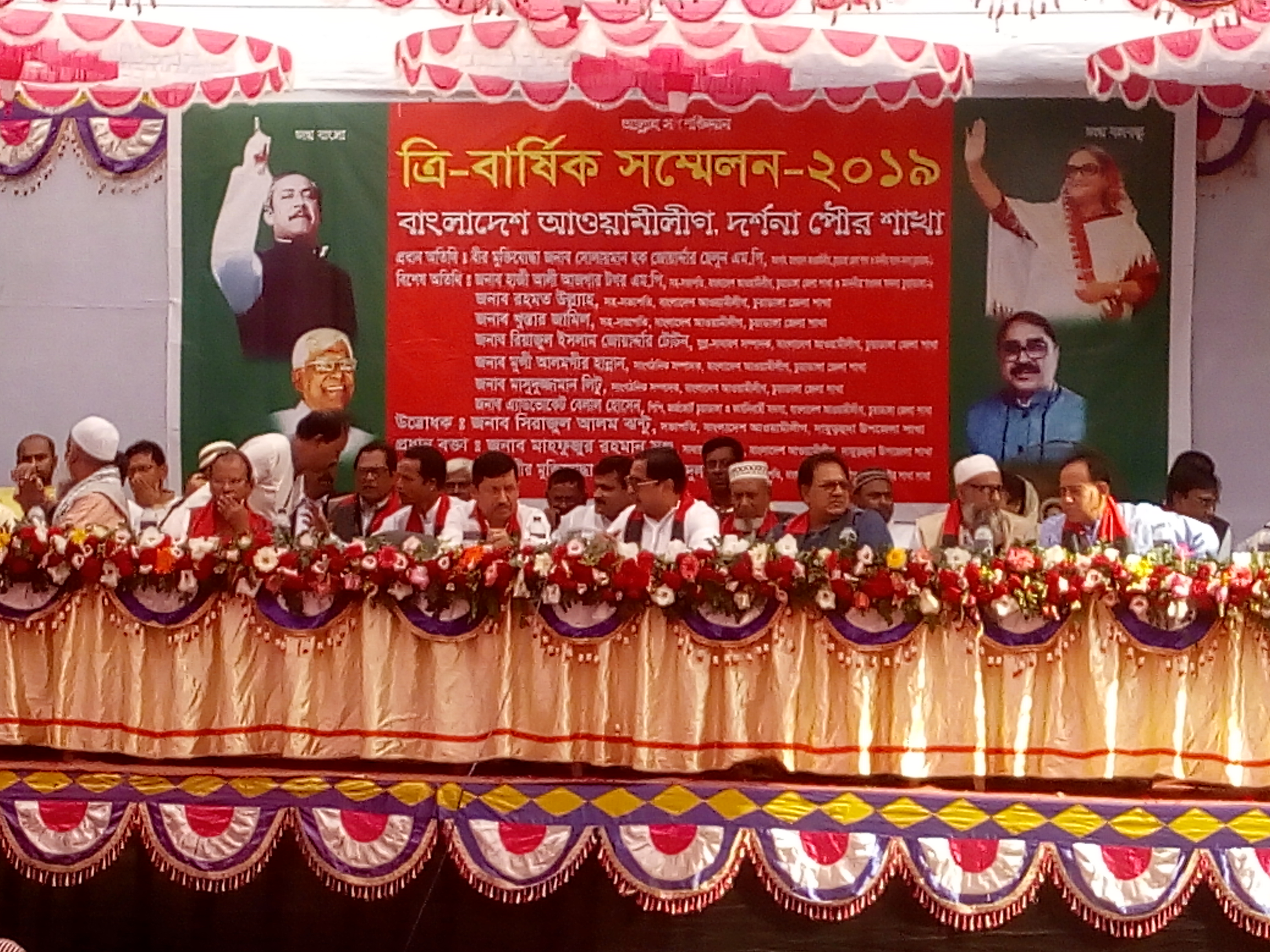 ব্যাপক উৎসাহ উদ্দীপনার ও জাকজমকের মধ্য দিয়ে দর্শনা পৌর আওয়ামীলীগের ত্রি-বার্ষিক সম্মেলন অনুষ্ঠিত হয়েছে ৩০ নভেম্বর শনিবার সকাল ১০ ঘটিকার সময় দর্শনা পৌর অডিটোরিয়ামে অনুষ্ঠিত হয়। অনুষ্ঠানে সভাপতিত্ব করেন দর্শনা পৌর আওয়ামীলীগের সভাপতি বীরমুক্তিযোদ্ধা হাজী শহিদুল ইসলাম। প্রধান অতিথি হিসেবে উপস্থিত থেকে বক্তব্যে দেন চুয়াডাঙ্গা-২ আসনের সংসদ সদস্য হাজী আলী আজগার টগর এমপি উদ্ধোধন করেন চুয়াডাঙ্গা জেলা আওয়ামীলীগের যুগ্ন সাধারণ সম্পাদক চুয়াডাঙ্গা সাবেক পৌর মেয়র রিয়াজুল ইসলাম জোয়াদ্দার টোটন, বিশেষ অতিথি হিসেবে উপস্থিত ছিলেন চুয়াডাঙ্গা জেলা আওয়ামী লীগের সহ-সভাপতি রহমতউল্লাহ, খুস্তার জামিল, চুয়াডাঙ্গা জেলা আওয়ামী লীগের সাংগঠনিক সম্পাদক মুন্সী আলমগীর হান্নান, মাসুদুজ্জামান, চুয়াডাঙ্গা জেলা আওয়ামী লীগের শিক্ষা বিষয়ক সম্পাদক পার কৃষ্ণপুর মদনা ইউনিয়নের চেয়ারম্যান এসএম জাকারিয়া আলম, এ সময় আরো উপস্থিত ছিলেন এডভোকেট বেলাল হোসেন, জজকোট চুয়াডাঙ্গা দামুড়হুদা উপজেলা আওয়ামীলীগের সভাপতি সিরাজুল আলম ঝন্টু, সাধারণ সম্পাদক মাহফুজুর রহমান মঞ্জু, জীবননগর উপজেলা চেয়ারম্যান হাফিজুর রহমান, মহিলা ভাইস চেয়ারম্যান আয়েশা সুলতানা লাকি, চুয়াডাঙ্গা জেলা যুবলীগের সাবেক আহ্বায়ক রঞ্জু, উপজেলা আওয়ামী যুবলীগের সভাপতি আব্দুল হান্নান ছোট, সাধারণ সম্পাদক হাজরত আলি, দামুড়হুদা উপজেলা ছাত্রলীগের সভাপতি আরিফুল ইসলাম মল্লিক, দর্শনা পৌর ছাত্রলীগের সভাপতি রফিকুল ইসলাম ববি, দর্শনা সরকারি কলেজ ছাত্রলীগের সভাপতি নাহিদ পারভেজ, সহ-সভাপতি আশরাফুজ্জামান রিপন, নোমান, সাধারণ সম্পাদক তোফাজ্জল হোসেন তপু প্রমুখ। আলোচনা শেষে সবার সম্মতিক্রমে দর্শনা পৌর মেয়র মতিয়ার রহমান কে সভাপতি ও দামুড়হুদা উপজেলা পরিষদের চেয়ারম্যান আলী মুনসুর বাবুকে সাধারণ সম্পাদক ঘোষণা করেন।