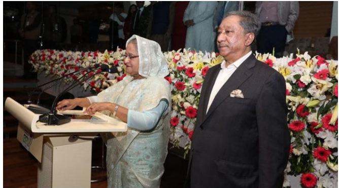 প্রধানমন্ত্রীর পাশে এসময় দাড়িয়েছিলেন বিসিবি সভাপতি নাজমুল হোসেন পাপন।