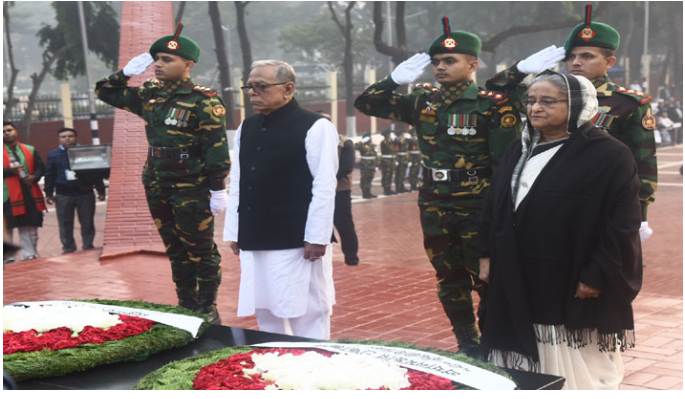 শহীদ বুদ্ধিজীবী দিবস উপলক্ষে ঢাকার মিরপুর শহীদ বুদ্ধিজীবী স্মৃতিসৌধে দেশের সূর্য সন্তানদের প্রতি শ্রদ্ধা জানিয়েছেন রাষ্ট্রপতি আবদুল হামিদ ও প্রধানমন্ত্রী শেখ হাসিনা। আজ শনিবার সকাল ৭টার দিকে ফুল দিয়ে শ্রদ্ধা নিবেদন করেন রাষ্ট্রপতি ও প্রধানমন্ত্রী।