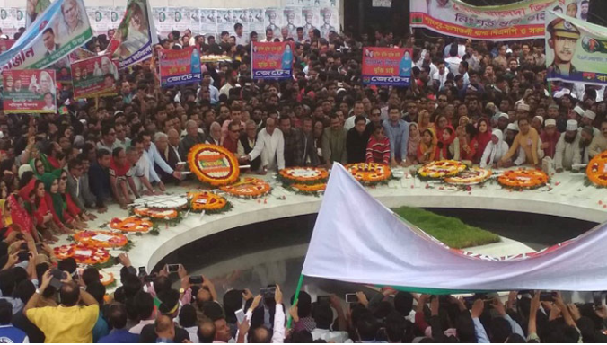 এর আগে বিএনপি মহাসচিবের নেতৃত্বে ফুল দিয়ে শ্রদ্ধা নিবেদনের পর বিএনপির প্রতিষ্ঠাতা জিয়াউর রহমানের রুহের মাগফিরাত কামনা করে মোনাজাত করা হয়।
