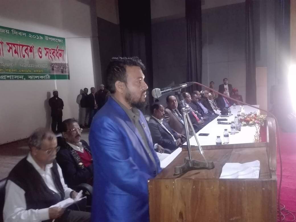 ১৬ ডিসেম্বর ঝালকাঠি মহান বিজয় দিবস ২০১৯ উপলক্ষে সম্বর্ধনা বীর মুক্তিযোদ্ধা সমাবেশ ও সংবর্ধনা বক্তব্য রাখছেন মুক্তিযোদ্ধা সংসদ সন্তান কমান্ডের সদস্য সচিব জনাব হাজী মোঃ শামীম হোসেন এ সময় উপস্থিত ছিলেন ঝালকাঠি জেলার জেলা প্রশাসক জনাব জোহর আলী ঝালকাঠি পুলিশ সুপার ফাতিমা ইয়াসমিন জেলা আওয়ামী লীগের সভাপতি সরদার শাহ আলম সাধারণ সম্পাদক খান সাইফুল্লাহ পনির জেলা কমান্ডার এমএ বাইজিদ ডেপুটি কমান্ডার রুহুল আমিন ডেপুটি কমান্ডার দুলাল সাহ অন্যান্য মুক্তিযোদ্ধারা ও তাদের সন্তান পরিবারবর্গবক্তারা মুক্তিযোদ্ধাদের সকল প্রকার সহযোগিতা এবং সকল প্রকার সুযোগ-সুবিধা সুযোগ-সুবিধা দেওয়ার প্রতিশ্রুতি ব্যক্ত করেন