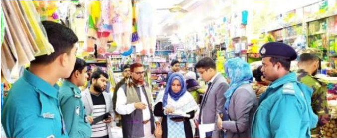 অভিযানকালে ওজন ও পরিমাপ মানদণ্ড আইন ২০১৮-এর ৩২(১) ধারা অনুযায়ী ওজন যন্ত্রের লাইসেন্স না থাকার অপরাধে মোহনা জেনারেল স্টোরকে ১০ হাজার টাকা জরিমানা করা হয়। এদিকে ধূমপান ও তামাকজাত দ্রব্য ব্যবহার (নিয়ন্ত্রণ) আইন ২০১৩ (সংশোধিত)-এর ৪ ধারা অনুযায়ী প্রকাশ্যে ধূমপান করার অপরাধে একজনকে ১০০ টাকা জরিমানা করা হয়।