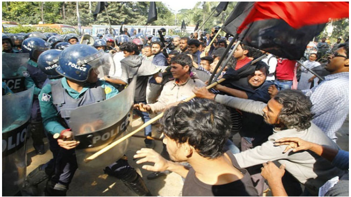 একপর্যায়ে মিছিল থেকে ইঁটপাটকেল ছুড়ে মারার অভিযোগ তুলে পুলিশ সদস্যরা নেতা-কর্মীদের ওপর শুরু করে লাঠিচার্জ। তাদের মারধর করে সড়ক থেকে সরিয়ে দেন। এতে ২০-২৫ নেতাকর্মী আহত হন। এসময় মৎস ভবন মোড় থেকে প্রেসক্লাবের দিকে যান চলাচল প্রায় ২০ মিনিট বন্ধ থাকে।বাম গণতান্ত্রিক জোটের সমন্বয়ক সিপিবি নেতা ক্বাফী রতন এ বিষয়ে বলেন, পুলিশের হামলায় জোটের নেতা বিপ্লবী ওয়ার্কার্স পার্টির সাধারণ সম্পাদক সাইফুল হক, গণসংহতি আন্দোলনের প্রধান সমন্বয়কারী জোনায়েদ সাকীসহ ২০-২৫ জন নেতাকর্মী আহত হয়েছেন। তাদের ঢাকা মেডিকেল কলেজ হাসপাতালে চিকিৎসা নিচ্ছেন।