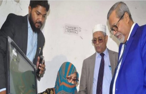 (ইভিএম) ভোট দিতে বিড়ম্বনায় পড়েন প্রধান নির্বাচন কমিশনার (সিইসি) কে এম নুরুল হুদা। পরে জাতীয় পরিচয়পত্র (এনআইডি কার্ড) দেখিয়ে নিজের ভোট দেন তিনি।