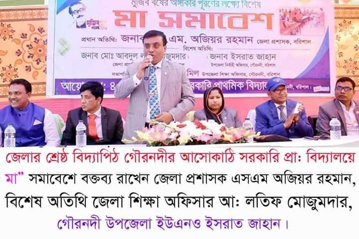 গৌরনদী উপজেলা শিক্ষা অফিসার ফয়সল জামিল’র সভাপতিত্বে মুজিব বর্ষের অঙ্গিকার পূরনের লক্ষে অনুষ্ঠিত মা সমাবেশ অনুষ্ঠানে প্রধান অতিথি ছিলেন বরিশাল জেলা প্রসাশক এস এম অজিয়র রহমান। বিশেষ অতিথি ছিলেন বরিশাল জেলা প্রাথমিক শিক্ষা অফিসার মোহাম্মদ আবদুল লতিফ মোজুমদার, গৌরনদী উপজেলা নির্বাহী কর্মকর্তা ইসরাত জাহান, গৌরনদী রিপোর্টার্স ইউনিটির সভাপতি সৈয়দ নকিবুল হক, সাবেক সভাপতি বিএম বেলাল, সহ-সভাপতি আবু সাঈদ খন্দকার। বক্তব্য রাখেন আশোকাঠি সরকারি প্রাথমিক বিদ্যালয়ের ম্যানেজিং কমিটির সভাপতি মো: মোকসেদুর রহমান, ৭নং ওয়ার্ড কাউন্সিলর গোলাম আহাদ মিয়া রাসেল। উপস্থিত ছিলেন উপজেলা সহকারী শিক্ষা অফিসার মো: বদিউজ্জামান, মো. মাহবুবুর রহমান, নাদিরা আফরিন, মো. পলাশ সরদার, মো: বজলুল করিম। রিপোর্টার্স ইউনিটির যুগ্ম সাধারন সম্পাদক মো. রফিকুল ইসলাম রনি, অর্থ সম্পাদক মোঃ লোকমান হোসেন রাজু, দপ্তর সম্পাদক রাশেদ আহমেদ, প্রচার সম্পাদক শাফিন আহমেদ। আশোকাঠি সরকারি প্রাথমিক বিদ্যালয়ের প্রধান শিক্ষক মোসা: খাদিজা ইয়াছমিন, সহকারি শিক্ষক মো: জামাল হোসেন, হাসিনা খানম, রেহানা পারভীন, সেলিনা আকতার, টুলু রানী দাস, তানিয়া আক্তার, উর্মি রহমান উপস্থিত ছিলেন।