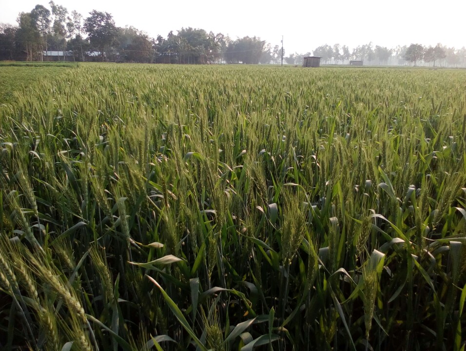 চলতি মৌসুমে ঠাকুরগাঁও জেলায় এবার গমের বাম্পার ফলনের সম্ভবনা রয়েছে । মাঠজুড়ে বাতাসে দোল খাচ্ছে গমের শীষ। তাইতো কষ্টার্জিত ফসল ঘরে তোলার স্বপ্নে বিভোর এখন এ এলাকার কৃষকরা। তাদের মুখে এখন হাসির ঝিলিক। কোন প্রাকৃতিক দুর্যোগের মুখে না পড়লে উৎপাদিত গম তাদের নিজেদের চাহিদা মিটিয়ে বিক্রি করে আর্থিক লাভবান হতে পারবেন বলে আশা করছেন তারা। এ জেলায় এবার গমের বাম্পার ফলনের আশা করছেন কৃষক ও সংশ্লিষ্টরা। স্বল্প সময় এবং লাভ বেশি হওয়ায় দিন দিন গম চাষীর তালিকা বেড়েই চলেছে। জেলার কৃষকদের কাছে গম একটি লাভজনক ফসলে পরিণত হয়েছে।এ মৌসুমে ২ লাখ ২৭ হাজার ২১৪ মেট্রিক টন গম উৎপাদনের আশা করছে কৃষি অধিদফতর। ঠাকুরগাঁও জেলার বালিয়াডাঙ্গী, হরিপুর, রাণীশংকৈল ও পীরগঞ্জ উপজেলার বিভিন্ন গ্রাম এলাকা ঘুরে দেখা গেছে, মাঠের পর মাঠ জুড়ে গমের আবাদ হয়েছে। বর্তমানে ফসলী মাঠ ভরে গেছে সবুজ সমারোহে। তাই ঠাকুরগাঁওয়ে এ বছর গমের বাম্পার ফলনের আশা করছেন চাষিরা।ঠাকুরগাঁও সদর উপজেলার দেবী গ্রামের কৃষক আশরাফুল ইসলাম জানান, গম চাষাবাদ খুব সহজ এবং স্বল্প সময়ে অধিক লাভজনক ফসল। তিনি এবছর ২৫ শতক জমিতে গমের আবাদ করেছেন। গত বছরের তুলনায় এ বছর ভালো ফলন হবে বলে তিনি আশা করছেন।হরিপুর উপজেলার ডাঙ্গীপাড়া গ্রামের চন্দ্র মোহন বলেন, গম চাষাবাদে খরচ এবং রোগ বালাই খুব কম হয় । এবছর আমি দুই একর জমিতে চাষ করেছি, ফলন ভাল হয়েছে।বালিয়াডাঙ্গী উপজেলার বড়বাড়ী গ্রামের আলমগীর হোসেন জানান, এক বিঘা মাটিতে গম চাষে ৬-৭ হাজার টাকা খরচ হয়। প্রতি বিঘা মাটিতে কমপক্ষে ১১-১৪ মণ গম উৎপাদন হয়। গমের মূল্য প্রতিমণে ১ হাজার টাকা হলেই ভাল লাভ হবে কৃষকের।বালিয়াডাঙ্গী উপজেলার উপ-সহকারী কৃষি অফিসার তপন মাহমুদ বলেন, কৃষি অফিস থেকে কৃষকদের সব ধরণের সহযোগিতা পরামর্শ দেওয়া হচ্ছে। ঠাকুরগাঁও জেলা কৃষি সম্প্রসারণ অধিদপ্তরের উপ-পরিচালক (শষ্য) কৃষিবিদ মো. সফিকুল ইসলাম জানান, যেখানে শীত যত দীর্ঘ হবে সেখানে গমের আবাদ তত ভালো হবে। এ বছর শীত দীর্ঘ হওয়ায় এ জেলায় গমের বাম্পার ফলন আশা করছি। গত বছরের তুলনায় এ বছর আরো অনেক বেশি গম উৎপাদন হবে বলে আমি আশাবাদ
