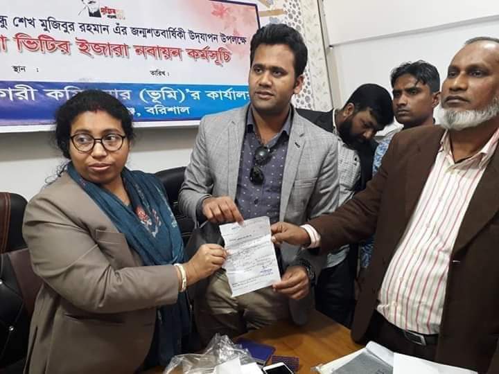 বাকরেগঞ্জে জাতির পিতা বঙ্গবন্ধু শেখ মুজিবুর রহমানের জন্মশতবার্ষিকী উপলক্ষে ভূমি অফিসের সেবা জনগনের দ্বারপ্রান্তে পৌঁছে দিতে হাটে বাজারে গিয়ে চান্দিনা ভিটার ইজারা নবায়ন কর্মসূচি হাতে নিয়েছে ভূমি অফিস। মোঙ্গলবার উপজেলার রঙ্গশ্রী ইউনিয়নের বোয়ালিয়া বাজারে এই কর্মসূচির উদ্বোধন করেন বাকেরগঞ্জ উপজেলা নির্বাহী অফিসার মাধবী রায় এবং সহকারী কমিশনার (ভূমি) তরিকুল ইসলাম। এসময় উপস্থিত ছিলেন ইউনিয়ন চেয়ারম্যান মোঃ বশির উদ্দিন সিকদার এবং ভূমি কার্যালয়ের বিভিন্ন কর্মকর্তা ও কর্মচারীবৃন্দ। ভূমি সেবা পেতে জনগন যাতে দালাল চক্র দিয়ে হয়রানী না হয় এবং সহজে সরকারের সেবা পায় সেজন্য এমন উদ্যোগ নেয় হয়েছে। পর্যায়ক্রমে উপজেলার সবকটি বাজারে গিয়ে ইজারা নবয়ন করা হবে বলে জানান, সহকারী কমিশনার ভূমি তরিকুল ইসলাম। ভিন্নধর্মী এমন সেবা পেয়ে খুশি এলাকার জনগন।