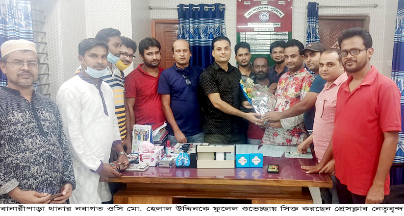 রাহাদ সুমন,বিশেষ প্রতিনিধি॥ চৌকস ইন্সপেক্টর মো. হেলাল উদ্দিন বানারীপাড়া থানায় অফিসার ইনচার্জ (ওসি) হিসেবে যোগদান করে মাদকের বিরুদ্ধে ‘জিরো টলারেন্সে’ অবস্থান নিয়ে মাত্র ১০ দিনের মধ্যে চিহিৃত ১০ মাদক কারবারি ও সেবীকে মাদকসহ গ্রেফতার করে সর্ব মহলে প্রশংসিত হয়েছেন। তাঁর নেতৃত্বে মাদক বিরোধী অব্যাহত অভিযানের ফলে মাদক সা¤্রাজ্যে থরকম্পণ শুরু হয়েছে। এদিকে মাদকমুক্ত করে বানারীপাড়াকে শান্তির জনপদে রূপান্তর করতে তাঁর এ দূরদর্শি ইতিবাচক কর্মকান্ডের জন্য বানারীপাড়া প্রেসক্লাব নেতৃবৃন্দ তাকে অভিনন্দন ও ফুলেল শুভেচ্ছায় সিক্ত করেছেন। শুক্রবার রাত ১১টায় থানায় তাঁর কার্যালয়ে বানারীপাড়া প্রেসক্লাব সভাপতি রাহাদ সুমন ও সম্পাদক সুজন মোল্লার নেতৃত্বে তাকে এ ফুলেল শুভেচ্ছায় সিক্ত করা হয়। এসময় অন্যান্যের মধ্যে উপস্থিত ছিলেন প্রেসক্লাবের নির্বাহী সদস্য সাইদুল ইসলাম,সহ-সভাপতি কে এম শফিকুল আলম জুয়েল, জাকির হোসেন. প্রভাষক মামুন আহমেদ,জাহিন মাহমুদ ও রেজাউল ইসলাম বেল্লাল.যুগ্ম সম্পাদক সজল চৌধুরী,মোঘল সুমন শাফকাত শুভ ও ফায়েজ আহম্মেদ শাওন,সাংগঠনিক সম্পাদক শফিক শাহিন,সহ-সম্পাদক মাইদুল ইসলাম শফিক,সদস্য নাহিদ সরদার প্রমুখ। প্রসঙ্গত ওসি হেলাল উদ্দিন বানারীপাড়ায় যোগদানের পর থেকেই পৌর শহর সহ বিভিন্ন ইউনিয়নে সাংবাদিক,জনপ্রতিনিধি,শিক্ষক ও ব্যবসায়ী সহ বিভিন্ন শ্রেণী পেশার মানুষের সঙ্গে মাদক,সন্ত্রাস,জঙ্গিবাদ,ইভটিজিং ও বাল্য বিয়ে বিরোধী সচেতনতা মূলক মতবিনিময় সভা অব্যাহত রেখেছেন। থানার প্রধান ফটকে জনসাধারণের আইনী সহায়তা পাওয়ার সুবিধার্থে ‘সেবাবক্স’ ও বিভিন্ন স্থানে সচেতনতামূলক ফ্যাষ্টুন সাঁটিয়েছেন। তাঁর এ ইতিবাচক এ কর্মকান্ডে শুরুতেই তিনি প্রশংসিত হয়েছেন। গত ২৬ আগস্ট সকালে চৌকস ইন্সপেক্টর মো. হেলাল উদ্দিন বানারীপাড়া থানায় অফিসার ইনচার্জ হিসেবে যোগদান করেন। এর আগে তিনি উজিরপুর থানায় ইন্সপেক্টর (তদন্ত) হিসেবে তিন বছর সততা ও কর্তব্যনিষ্ঠার সঙ্গে দায়িত্ব পালণ করে প্রশংসা ও সুনাম অর্জণ করেন। তিনি টানা চার বার বরিশাল রেঞ্জের শ্রেষ্ঠ তদন্ত কর্মকর্তা নির্বাচিত হওয়ার গৌরব অর্জণ করেন । ###