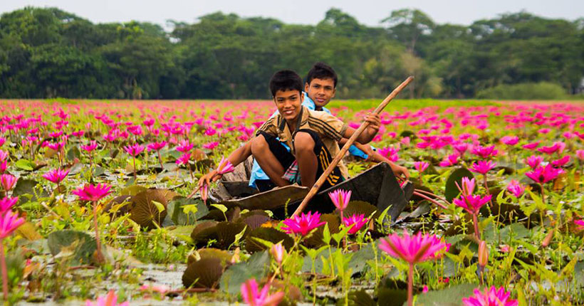 রাহাদ সুমন,বিশেষ প্রতিনিধি॥ বরিশালের উজিরপুর উপজেলার সাতলা বিল এলাকা এখন লাল আর সাদা শাপলার অপরূপ সৌন্দর্যের এক লীলা ভূমি। সূর্যের আভাকেও যেন হার মানিয়েছে এ বিলের পানিতে লতাপাতা গুল্মে ভরা শত সহস্র লাল ও সাদা শাপলা। এ যেন প্রকৃতির বুকে আঁকা এক নকশি কাঁথা । এ বিলে বর্ষার শুরুতেই ফুটতে শুরু করে শাপলা ফুল । প্রতিবছর মার্চ থেকে নভেম্বর মাস পর্যন্ত এখানে শাপলার মৌসুম। প্রায় ১০ হাজার একর জলাভূমির মধ্যে জন্ম নেয়া লাল,নীল ও সাদা রঙের কোটি কোটি শাপলাগুলো(ধিঃবৎষরষষু)এক নজর দেখার জন্য সূর্যোদয় থেকে শুরু করে সূর্যাস্ত পর্যন্ত নানা বয়সের হাজারো মানুষের ভিড় লেগে থাকে। পর্যটকদের আনাগোনায় দিনদিন মুখরিত হচ্ছে শাপলার রাজ্যখ্যাত সাতলা এলাকা। শাপলার মাঝে বাংলার চিরন্তন রূপ খুঁজে পাওয়া যায়। তাই শাপলা বাংলাদেশের জাতীয় ফুল। শুধু সৌন্দর্যই নয় সুস্বাদু খাবার হিসেবেও শাপলার বেশ কদর রয়েছে। শাপলা ফুলের অপরূপ শোভা সৌন্দর্য পিয়াসি মানুষকে বিমোহিত করে। শাপলার অপরূপ শোভা ও সৌন্দর্যে মুগ্ধ হয় মানুষ। হাজারো ফুলের ভিড়ে শাপলা স্বতন্ত্র বৈশিষ্ট্যমন্ডিত। শাপলার মতো সরল অথচ নয়নাভিরাম সৌন্দর্যমন্ডিত বৈশিষ্ট্য অন্য কোনো ফুলে নেই। বাংলাদেশের সকল জায়গায় শাপলা পাওয়া যায়। তাই শাপলাকে জাতীয় ফুলের মর্যাদা দেওয়া হয়েছে। বাংলাদেশের মুদ্রায়ও শাপলার প্রতিচ্ছবি রয়েছে। দীঘি-নালা-খাল-বিলে পরিপূর্ণ বাংলাদেশর শাপলা ফুলের সৌন্দর্যে মুখরিত করেছে বলে শাপলাকে জাতীয় ফুল হিসেবে আখ্যা দেয়া হয়েছে। উজিরপুর উপজেলার সাতলা বিলের লাল শাপলার সৌন্দর্য উপভোগ করতে পর্যটক আসে বহু দূর দূরান্ত থেকে । এ বিলে ভ্রমনের জন্য রয়েছে টাকার বিনিময়ে ছোট আকারের নৌকা। সূর্য উদয় ক্ষণে সূর্য রশ্মি পড়া মাত্রই যেন মন পাগল করা এক সৌন্দর্যের লীলাভূমিতে পরিণত হয় সাতলা বিল। এ ছাড়া সন্ধ্যার সূর্য অস্তমিত মুহূর্তে মনে হয় যেন মেঘ মালায় ঢেকে যাওয়া এক অপরূপ দৃশ্য। সাতলা বিলের লাল শাপলার সৌন্দর্য উপভোগ করে ক্ষণিকের জ্বালা যন্ত্রণা দূর করা যায়। এখানে এলে মন কেড়ে নেয়া দৃশ্য রেখে কারোরই মন চায় না আর ফিরে যেতে। ওই এলাকার গ্রামাঞ্চলের সহজ সরল মানুষগুলো বিলের পানিতে জীবন সংগ্রামের আয়ের পথ হিসাবে বেছে নিয়েছে শাপলা তোলাকে। তারা সকালের সূর্যের আলো ফোটার আগেই ছোট ছোট নৌকা নিয়ে নেমে পড়ে শাপলা বিলে শাপলা তোলার জন্য। পানির মধ্য থেকে শাপলাগুলো তুলে এনে বাজারে বিক্রি করে জীবিকা নির্বাহ করছে শত শত পরিবার। প্রায় দু’শত বছর ধরে সাতলার বিলগুলোতে শাপলা জন্ম হচ্ছে। ওই এলাকার প্রায় ৫০ ভাগ অদিবাসী শাপলার চাষ ও বিপণন কাজের সাথে জড়িত রয়েছে। স্থানীয়রা দেশের বিভিন্ন এলাকা থেকে আসা পর্