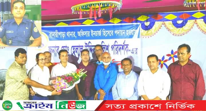 বরিশালের উজিরপুর মডেল থানার ইন্সপেক্টর(তদন্ত) মোঃ হেলাল উদ্দিনের বনারীপাড়া থানায় অফিসার ইনচার্জ (ওসি) হিসেবে পদায়ন হওয়ায় উজিরপুর মডেল থানার পক্ষ থেকে তাকে বিদায় সংবর্ধনা দেওয়া হয়েছে। ১১ সেপ্টেম্বর শুক্রবার সন্ধ্যায় উজিরপুর মডেল থানা চত্বরে এ সংবর্ধনা অনুষ্ঠিত হয়। উজিরপুর মডেল থানার অফিসার ইনচার্জ (ওসি) মোঃ জিয়াউল আহসানের সভাপতিত্বে অনুষ্ঠানে অন্যান্যের মধ্যে উপস্থিত ছিলেন উজিরপুর উপজেলা আওয়ামী লীগের সভাপতি মোঃ জামাল হোসেন,সাধারন সম্পাদক ও পৌর মেয়র মোঃ গিয়াস উদ্দিন বেপারী, নবাগত ইন্সপেক্টর(তদন্ত) মাহবুব হোসেন,আওয়ামী লীগ নেতা আব্দুল হাকিম সেরনিয়াবাত,উজিরপুর উপজেলা ভাইস চেয়ারম্যান অপুর্ব কুমার বাইন রন্টু,শিকারপুর ইউনিয়ন চেয়ারম্যান মোঃ সরওয়ার হোসেন,বড়াকোঠা ইউনিয়নের চেয়ারম্যান মোঃ সহিদুল ইসলাম, প্যানেল মেয়র হেমায়েত উদ্দিন হিমু ,উপজেলা ছাত্রলীগের সভাপতি অসিম কুমার ঘরামী,,বানারীপাড়া পৌর ছাত্রলীগের সাধারন সম্পাদক সজল চৌধুরী, বানারীপাড়া পৌর স্বেচ্ছাসেবক লীগের সভাপতি শফিক শাহিন,সাধারন সম্পাদক ফয়েজ আহমেদ শাওন প্রমুখ।