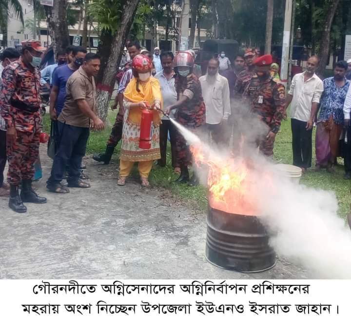 বরিশালের গৌরনদী উপজেলা পরিষদ চত্বরে অগ্নিসেনাদের অগ্নিনির্বাপণে সচেতনতামূলক প্রশিক্ষণ মহড়া প্রদান করা হয়।