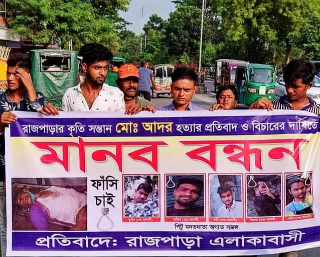 রাজশাহী প্রতিনিধিঃ ছুরিকাঘাতে নিহত আদরের লাশ নিয়ে বিক্ষোভ মিছিল ও মানববন্ধন করেছেন নিহতের স্বজন ও এলাকাবাসী। আজ বিকেলে রাজশাহী মেডিকেল কলেজ হাসপাতাল থেকে পোস্টমর্ডেম শেষে লাশ নিয়ে মহানগরীর ভেরি পাড়ার মোড়ে এসে রাস্তা অবরোধ করে মানববন্ধন ও বিক্ষোভ করেন তারা।