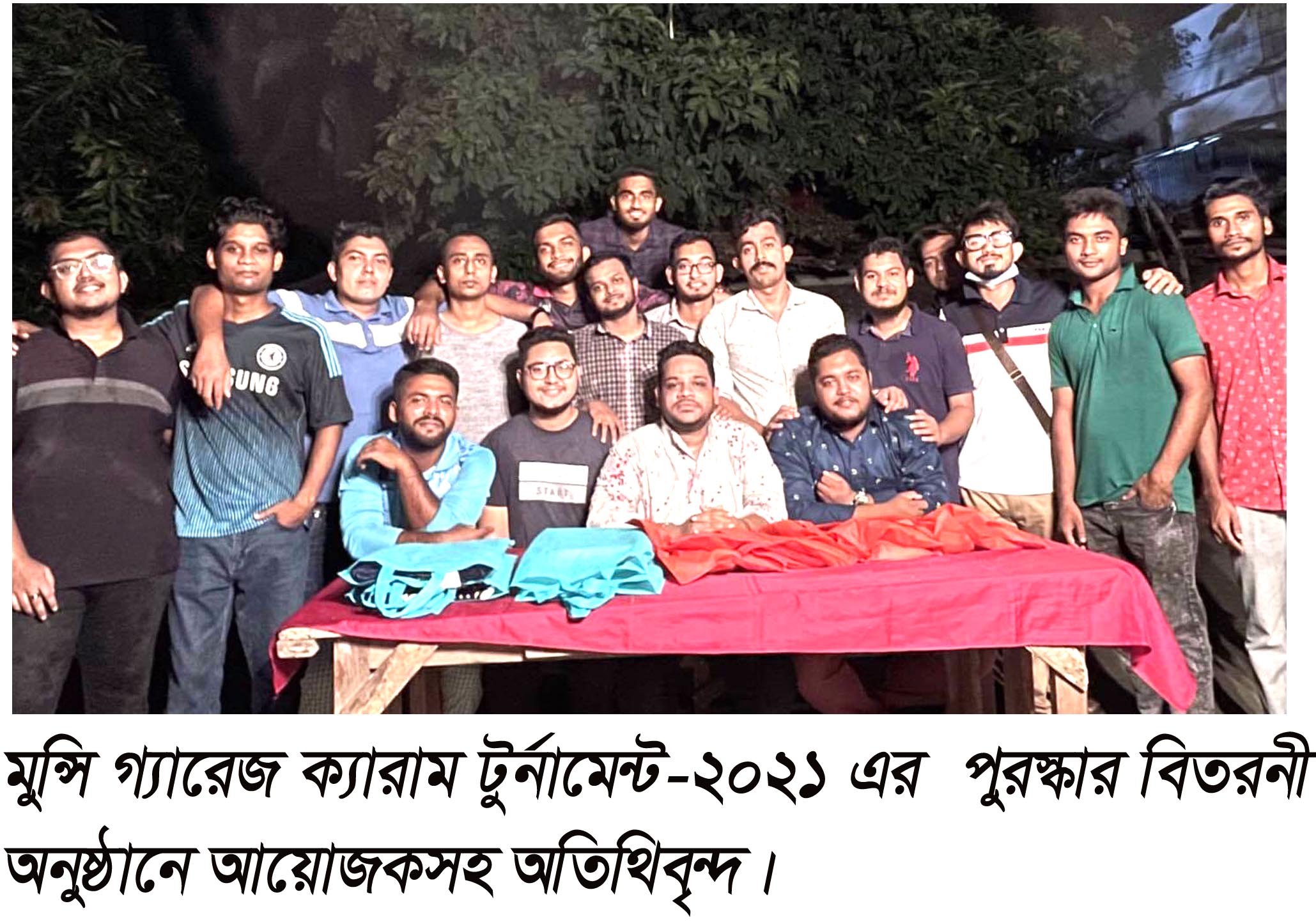 “মুন্সী গ্যারেজ ক্যারাম টুর্নামেন্ট” মুন্সির গ্যারেজ আয়োজনে অনুষ্ঠিত হয়। উক্ত টুর্নামেন্টে অংশগ্রহন করেন মুন্সী গ্যারেজ সহ নগরীর বিভিন্ন এলাকার এক ঝাক তরুণ।