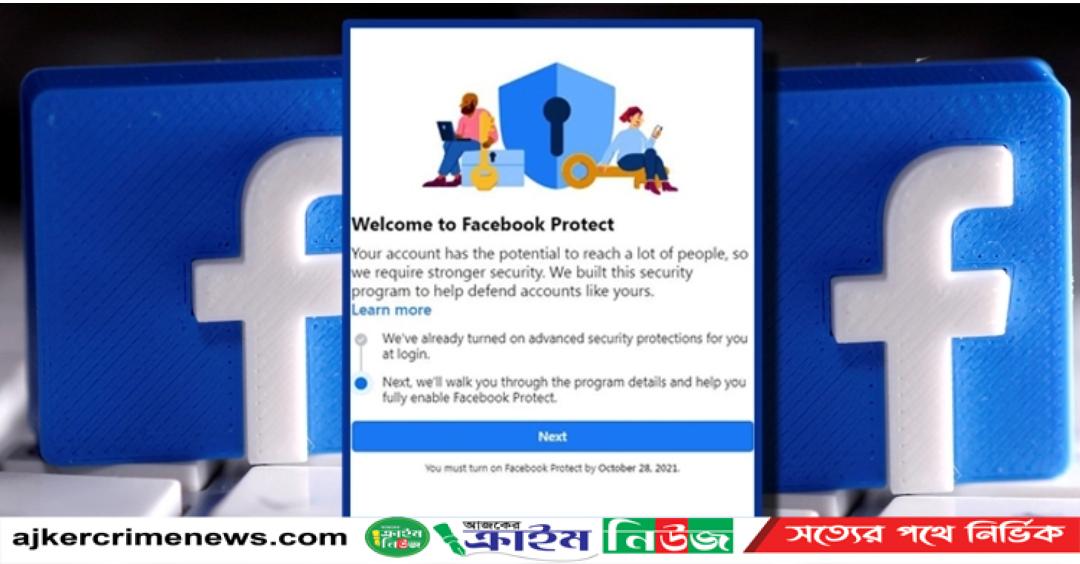 ফেসবুক জানিয়েছে, ২৮ অক্টোবরের মধ্যে ফেসবুক প্রোটেক্ট নামে একটি ফিচার ‘টার্ন অন’ বা ‘চালু’ না করলে অ্যাকাউন্টটি লক হয়ে যাবে। মূলত অ্যাকাউন্টকে বাড়তি নিরাপত্তা দিতে ফেসবুক প্রোটেক্ট নামে নতুন একটি ফিচার আনছেন তারা। এটি একটি ভলান্টারি প্রোগ্রাম, যা নির্বাচনী প্রার্থী, তাদের প্রচারণা এবং নির্বাচিত প্রতিনিধিদের অ্যাকাউন্টকে বাড়তি সুরক্ষা দেবে।