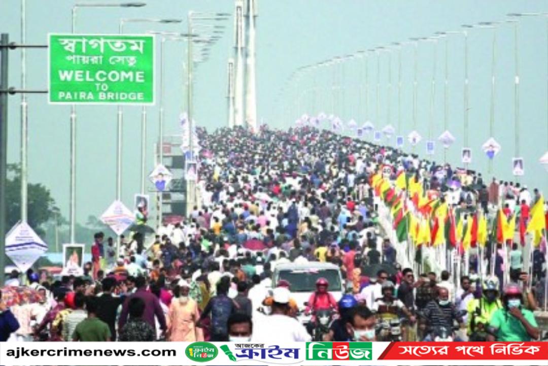 স্বাধীনতার ৫০ বছর পর দেশের সর্ব দক্ষিণের কুয়াকাটা ও পায়রা সমুদ্রবন্দর পর্যন্ত ফেরিবিহীন সড়ক যোগাযোগ চালু হয়েছে। গতকাল সকালে প্রধানমন্ত্রী ভার্চুয়ালি যুক্ত হয়ে পায়রা সেতুর উদ্বোধন ঘোষণার পরপরই হাজারো জনতার ঢল নামে সেতু দর্শনে। এ সময় বাঁধভাঙা উচ্ছ্বাস প্রকাশ করেন তারা।
