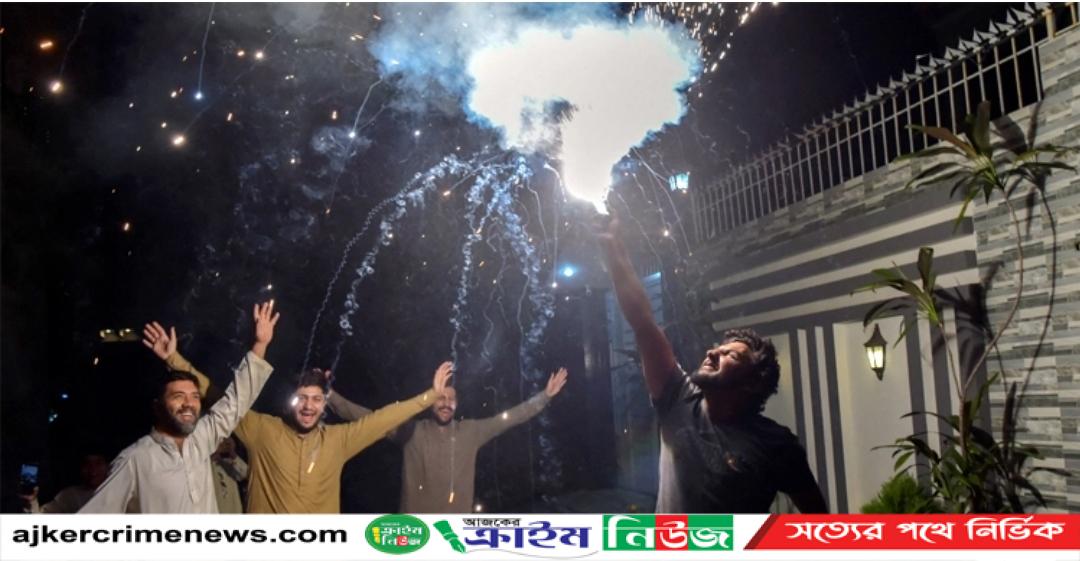 পাকিস্তানি সম্প্রচারমাধ্যম জিও টিভি জানিয়েছে, রোববার (২৪ অক্টোবর) রাতে ভারতের বিপক্ষে ঐতিহাসিক ম্যাচ জয়ের পরপরই রাস্তায় নেমে আসেন উল্লাসিত পাকিস্তানিরা। নেচে-গেয়ে, বাজি পুড়িয়ে বিজয় উদযাপন করেছেন তারা।
