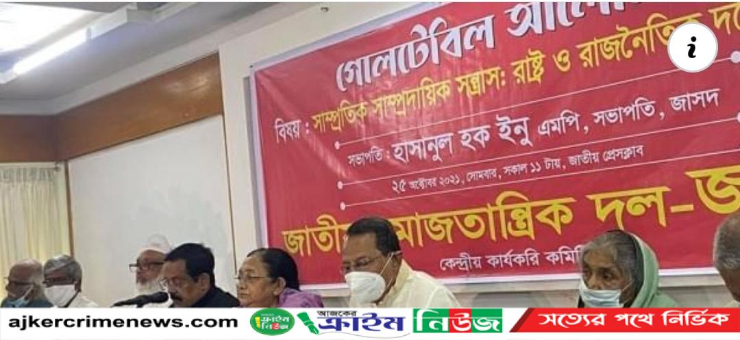 আজ সোমবার জাতীয় প্রেস ক্লাবে জাসদ আয়োজিত “সম্প্রতি সাম্প্রদায়িক সন্ত্রাস : রাষ্ট্র ও রাজনৈতিক দলের ভূমিকা” শীর্ষক গোলটেবিল আলোচনা সভায় তিনি একথা বলেন।