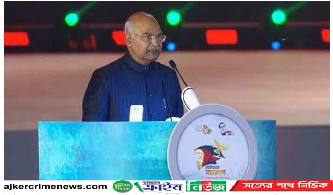 কোবিন্দ বলেন, ১৯৭১ সালের মুক্তিযুদ্ধের মতো এত মহাকাব্যিক ত্যাগের সাক্ষী মানব সভ্যতা খুব কমই হয়েছে। আপনাদের স্বাধীনতা সংগ্রাম প্রতিটি ভারতীয়, বিশেষ করে আমার প্রজন্মের মানুষের হৃদয়ে একটি বিশেষ স্থান করে নিয়েছে। গতকাল সাভারে লাখো শহীদের স্মৃতিসৌধ এবং বঙ্গবন্ধু জাদুঘর পরিদর্শন ছিল আমার জন্য গভীর আবেগময় অভিজ্ঞতা। আমি তার ঐতিহাসিক ৭ মার্চের ভাষণের সারাংশ শুনে বিশেষভাবে অনুপ্রাণিত হয়েছি। এটি সর্বদা ন্যায়বিচার, স্বাধীনতা এবং গণতন্ত্রের চেতনাকে উদ্দীপিত করে। তাই ইউনেস্কো এই ভাষণকে বিশ্বতালিকায় ন্যায়সঙ্গতভাবে স্বীকৃতি দিয়েছে।