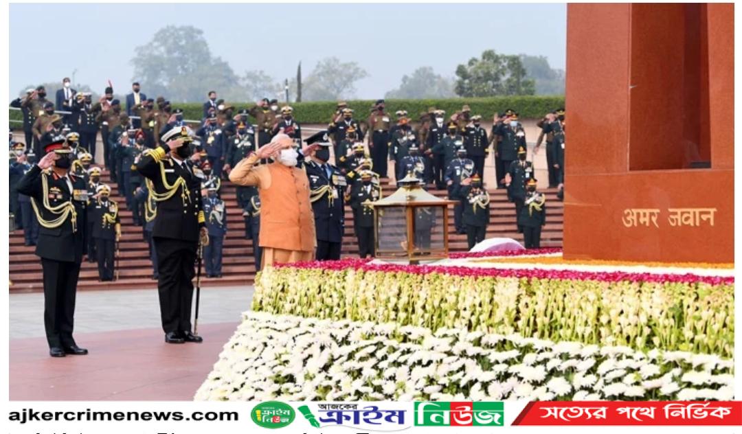 মহান বিজয় দিবস উপলক্ষে বৃহস্পতিবার দিল্লির জাতীয় সমর স্মৃতিসৌধে শ্রদ্ধাজ্ঞাপন করেছেন ভারতের প্রধানমন্ত্রী নরেন্দ্র মোদি। যুদ্ধে নিহত সেনাদের স্মরণে তিনি সেখানে পুষ্পস্তবক অর্পণ করেন। খবর হিন্দুস্তান টাইমসের।