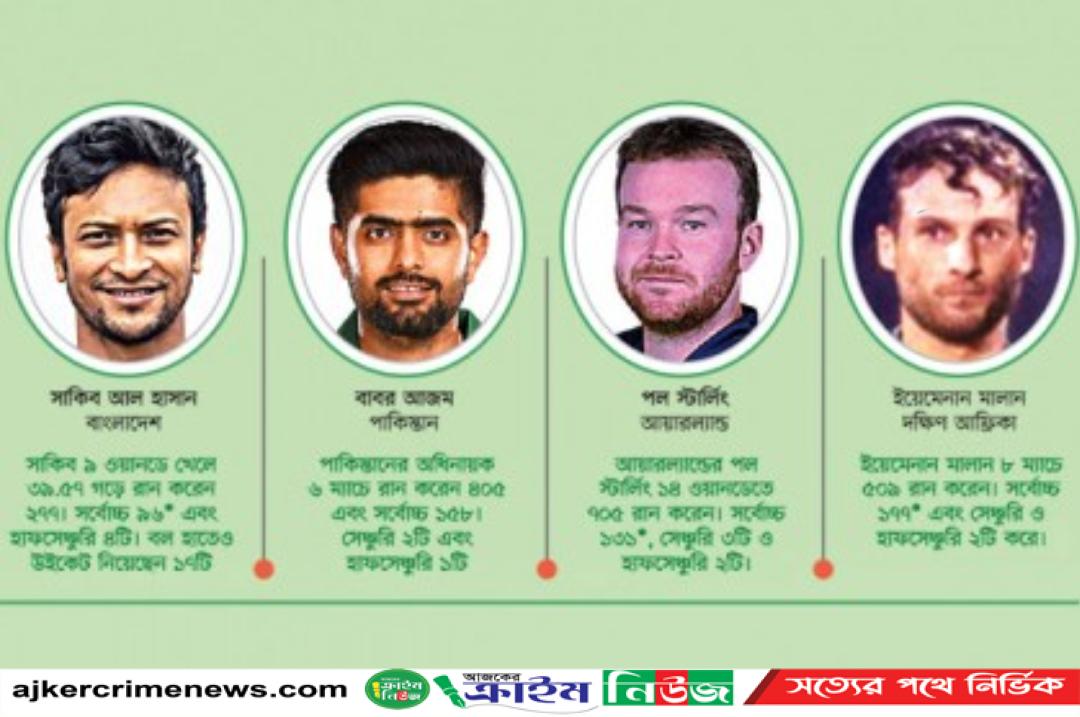 দক্ষিণ আফ্রিকার ইয়েমেনান মালান ৮ ম্যাচে ৫০৯ রান করেন। সর্বোচ্চ ১৭৭* এবং সেঞ্চুরি ও হাফসেঞ্চুরি ২টি করে। পাকিস্তানের অধিনায়ক বাবর আজম ৬ ম্যাচে রান করেন ৪০৫ এবং সর্বোচ্চ ১৫৮। সেঞ্চুরি ২টি এবং হাফসেঞ্চুরি ১টি। বিশ্বেও অন্যতম সেরা অলরাউন্ডারকে ওয়ানডে মনোনয়ন দিয়ে আইসিসি বার্তায় লিখেছে- ‘এক বছরের স্থগিত নিষেধাজ্ঞাসহ দুই বছরের শাস্তি কাটিয়ে ২০২১ সালের জানুয়ারিতে নিজের প্রত্যাবর্তনী সিরিজেই সেরা খেলোয়াড়ের পুরস্কার জিতেছেন সাকিব আল হাসান। ঘরের মাঠে শ্রীলঙ্কার বিপক্ষে সিরিজটি তুলনামূলক খারাপ কেটেছে। টানা দুই সিরিজে সেরা হন। জিম্বাবুয়ের বিপক্ষে দুর্দান্ত ক্রিকেট খেলেন। ’