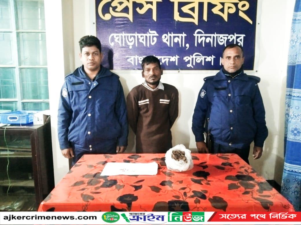 ঘোড়াঘাট থানার ওসি আবু হাসান কবির বলেন, সুকৌশলে বেশ কিছুদিন থেকে মাদক বেঁচা কেনা করছে এমন খবরের প্রেক্ষিতে উপ-পরিদর্শক মোজাফফর রহমান সহ ছদ্মবেশে কয়েক জন পুলিশ তার কাছে মাদক কারবারি সেজে মাদক ক্রয় করতে গেলে তার বাড়ির সামনে রাস্তার উপর মাদক বেচতে আসলে গাঁজা,ইয়াবা ও হেরোইন সহ ছদ্মবেশী পুলিশ তাকে ধরে ফেলে।সীমান্তবর্তী থানা হাকিমপুর এবং পার্শ্ববর্তী গাইবান্ধা জেলার পলাশবাড়ী থানার চতরা গ্রাম থেকে এ সব মাদক ক্রয় করে এনে বিক্রি করে বলে প্রাথমিক জিজ্ঞাসা বাদে সে স্বীকার করে।