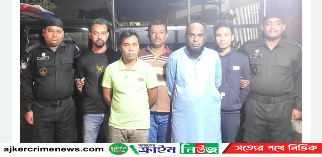 আটককৃতরা হলেন, মো. নজরুল ইসলাম মিলন, বাদল আকন, মো. হেলাল উদ্দিন, আব্দুর রহমান রিপন ও মো. মাসুদ আলম।