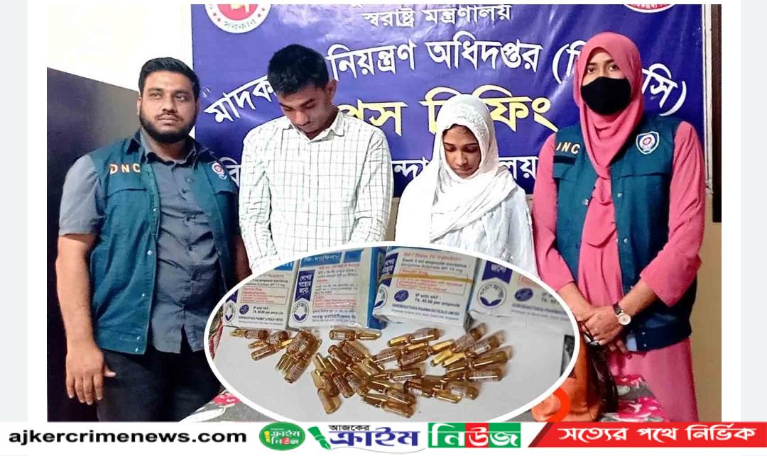 বরিশাল মাদকদ্রব্য নিয়ন্ত্রন অধিদপ্তরের বিভাগীয় গোয়েন্দা কার্যালয়ের সহকারী পরিচালক এনায়েত হোসেন জানান, গোপন সংবাদের ভিত্তিতে বৃহস্পতিবার দুপুর বারটার দিকে বরিশাল জেলার বাবুগঞ্জ উপজেলার রহমতপুর বাসস্টান্ডে গোল্ডলাই বাসে অভিযান চালানো হয়। এসময় স্বামী-স্ত্রী পরিচয় দেয়া দুইজনকে তল্লাশি করে ১০০ এ্যামপুল জি-মরফিন ইনজেকশন সহ তাদের আটক করা হয়ছে।