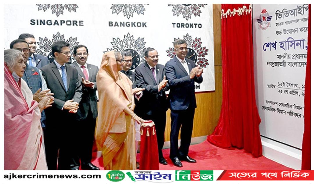 রাষ্ট্রীয় সফরে জাপানের উদ্দেশে রওনা দেওয়ার আগে হযরত শাহজালাল আন্তর্জাতিক বিমানবন্দরে নবনির্মিত ভিভিআইপি লাউঞ্জ উদ্বোধন করেছেন প্রধানমন্ত্রী শেখ হাসিনা।