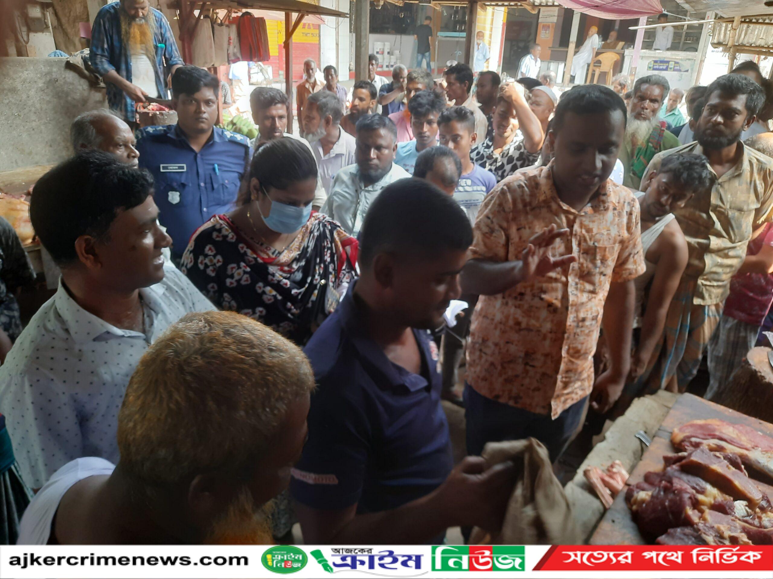 দিনাজপুরের ঘোড়াঘাট উপজেলা প্রাণী সম্পদ অধিদপ্তর উপজেলার ২টি হাটে ৫ জন মাংস ক্যবসায়ীর নিকট থেকে ৯ হাজার টাকা জরিমানা আদায় করেছে। ১ জুন বৃহস্পতিবার সকালে উপজেলা সহকারি কমিশনার ভুমি (এসিল্যান্ড) মোঃ মাহমুদুল হাসানের নেতৃত্বে ভেজাল বিরোধী ্অভিযান পরিচালনা করে উপজেলার রাণীগঞ্জ হাটে ৩ জনের নিকট থেকে ২ হাজার টাকা করে ৬ হাজার টাকা ও ঘোড়াঘাট হাটে ২ জনের নিকট থেকে ১ হাজার ৫০০ টাকা করে জরিমানা আদায় করা হয়। ্অস্বাস্থ্যকর পরিবেশে মাংস বিক্রয় ও ওজনে কম দেওয়ার ্অভিযোগে জরিমানা আদায় করা হয়। ্অভিযানকালে উপজেলা প্রাণী সম্পদ ্অফিসার বিপ্লব কুমার দে ও উপজেলা ভেটারেনারী সার্জন মোছাঃ আরিফা পারভিন বর্না সঙ্গে ছিলেন।