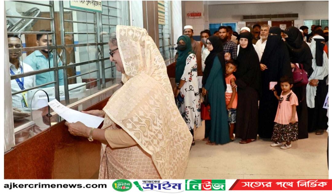 আজকের ক্রাইম ডেক্স : সাধারণ রোগীদের মতো ১০ টাকায় টিকিট কেটে চোখ পরীক্ষা করালেন প্রধানমন্ত্রী শেখ হাসিনা। আজ শনিবার সকালে রাজধানীর জাতীয় চক্ষু বিজ্ঞান ইনস্টিটিউট ও হাসপাতালের বহির্বিভাগে গিয়ে টিকিট কেটে পরীক্ষা করান প্রধানমন্ত্রী।