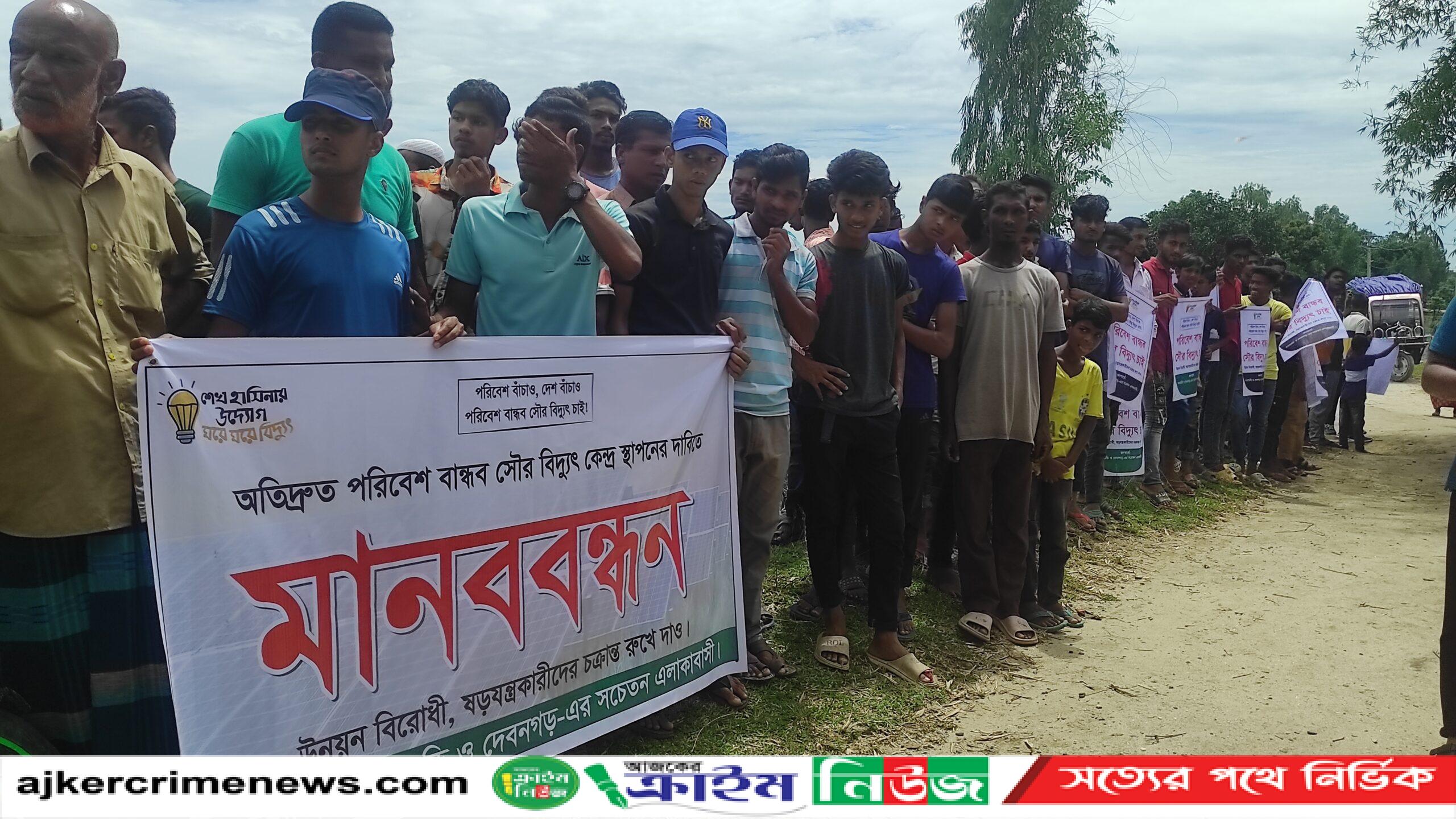 মঙ্গলবার দুপুরে উপজেলার দেবনগর ইউনিয়নের করতোয়া সোলার লিমিটেড সংলগ্ন ময়নাগুড়ি এলাকায় এ কর্মসূচী পালন করেন। এতে আশপাশের কয়েক গ্রামের সহস্রাধিক নারী-পুরুষ অংশ নেন।