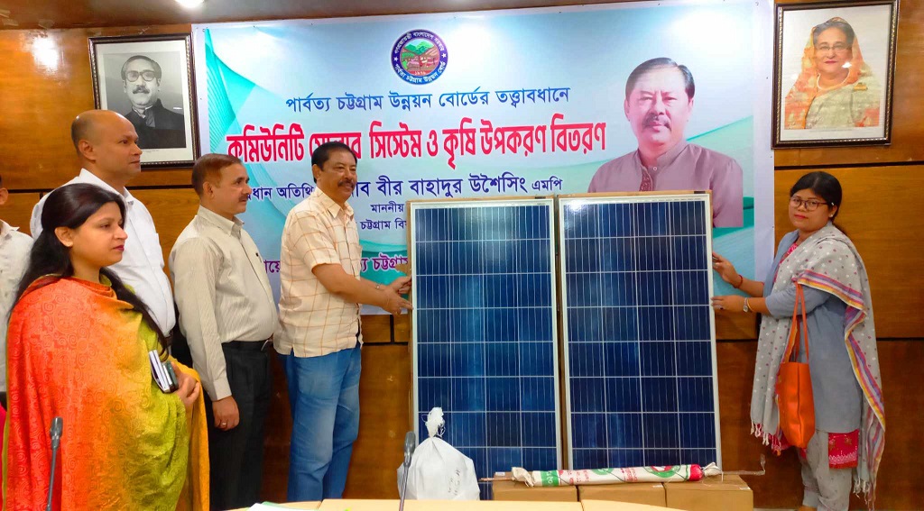 আজ বানদরবান সদরে পার্বত্য চট্টগ্রাম উন্নয়ন বোর্ডের বান্দরবান ইউনিট কার্যালয়ে বান্দরবান জেলার দুর্গম এলাকায় বিদ্যালয় ও ছাত্রাবাসসমূহে বিদ্যুতের আলো সরবরাহ নিশ্চিতকরণে কমিউনিটি সোলার সিস্টেম বিতরণ এবং দুর্গম এলাকার চাষীদের জীবন মান উন্নয়নে সম্পূর্ণ বিনামূল্যে পাওয়ার টিলার মেশিন, সেচ যন্ত্র ও কৃষি উপকরণ বিতরণ অনুষ্ঠানে প্রধান অতিথির বক্তব্যে এসব কথা বলেন।