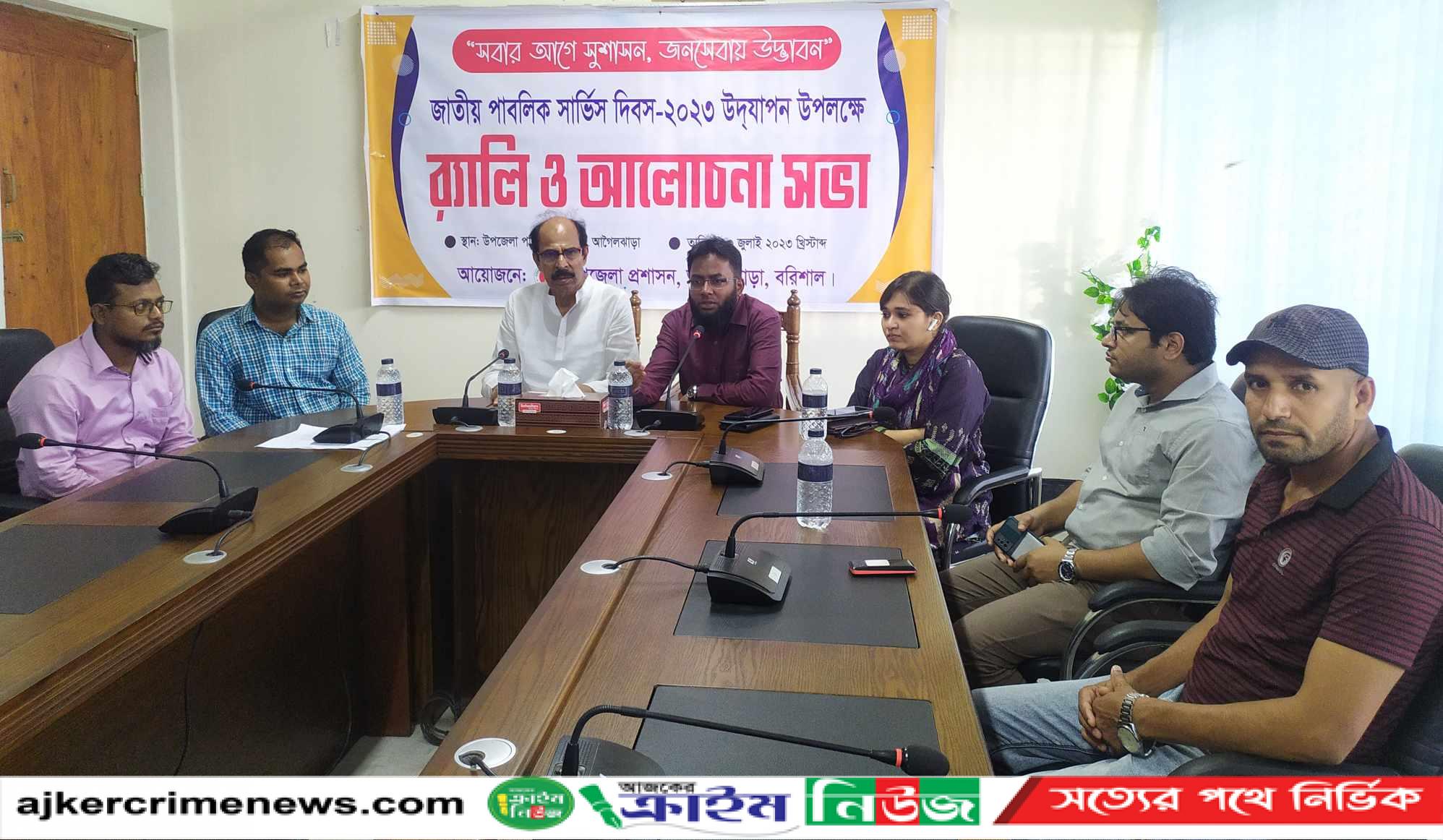 'সবার আগে সুশাসন জনসেবায় উদ্ভাবন' এই প্রতিপাদ্যকে সামনে রেখে বরিশালের আগৈলঝাড়ায় ২৩জুলাই রোববার উপজেলা চত্বরে জাতীয় পাবলিক সার্ভিস দিবস উপলক্ষে রেলি অনুষ্ঠিত হয় । রেলি শেষে উপজেলা হলরুমে উপজেলা নির্বাহী কর্মকর্তা মোঃ শাখাওয়াত হোসেনের সভাপতিত্বে আলোচনা সভায় বক্তব্য রাখেন উপজেলা চেয়ারম্যান বীর মুক্তিযোদ্ধা আব্দুর রইচ সেরনিয়াবাত, উপজেলা ভূমি কমিশনার উম্মে ইমামা বানিন , মৎস্য কর্মকর্তা মোহাম্মদ আলম, এ সময় উপস্থিত ছিলেন উপজেলা প্রেসক্লাবের সভাপতি এইচ এম মাসুম, যুগ্ম সাধারণ সম্পাদক আকাশ মাহমুদ, যুগ্মসাধারণ সম্পাদক বিকাশ রায়সহ অনেকে।