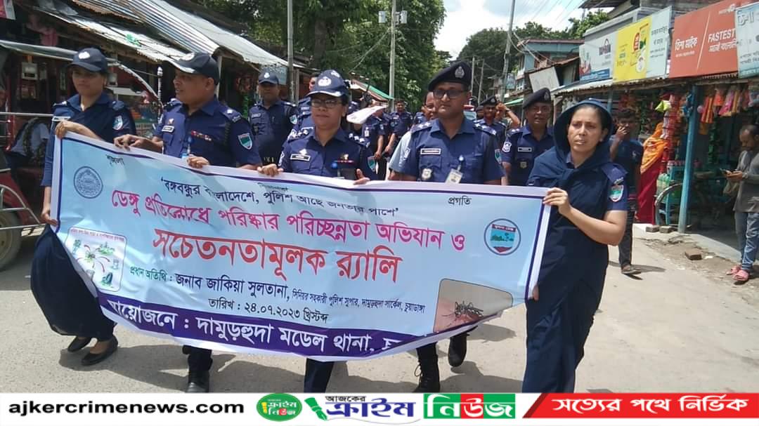 মাহমুদ হাসান রনি, চুয়াডাঙ্গা প্রতিনিধি ঃ দামুড়হুদা মডেল থানা পুলিশের উদ্যোগে ডেঙ্গু প্রতিরোধে পরিষ্কার-পরিচ্ছন্নতা অভিযান ও সচেতনতামূলক বর্ণাঢ্য র্যালি অনুষ্ঠিত হয়েছে।