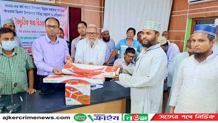 নীলফামারীর ডিমলা উপজেলার বিভিন্ন মাদ্রাসা ও এতিমখানায় বৈদ্যুতিক পাখা (ফ্যান) বিতরণ করা হয়েছে। বুধবার (২৬-জুলাই) ডিমলা উপজেলা পরিষদের আয়োজনে ২০২২-২৩ অর্থ বছরে উপজেলা উন্নয়ন সহায়তা খাতের আওতায় ১২৭টি মাদ্রাসা ও এতিমখানা প্রতিষ্ঠানে ৬৭৫টি বিআরবি লাভলী কোম্পানির বৈদ্যুতিক পাখা বিতরণ করা হয়।উপজেলা নির্বাহী কর্মকর্তা বেলায়েত হোসেনের সভাপতিত্বে ও ডিমলা উচ্চ বিদ্যালয়ের প্রধান শিক্ষক (ভারপ্রাপ্ত) লুৎফর রহমানের সঞ্চালনায় প্রধান অতিথি নীলফামারী-১ আসনের সংসদ সদস্য বীর মুক্তিযোদ্ধা আলহাজ্ব আফতাব উদ্দিন সরকার প্রধান অতিথি হিসেবে উপস্থিত থেকে মাদ্রাসা ও এতিমখানার শিক্ষকদের হাতে তুলে দেন এসব বৈদ্যুতিক পাখা। বিতরণ কার্যক্রমের পূর্বে প্রধান অতিথির বক্তব্যে বীর মুক্তিযোদ্ধা আফতাব উদ্দিন সরকার বলেন, বাংলাদেশ সরকারের প্রসংশা করে বলেন, বহির্বিশ্ব বাংলাদেশের উন্নয়ন অগ্রযাত্রা অপলক দৃষ্টিতে তাকাচ্ছে। শুধু তাই নয় বিশ্বের ১০ জন সফল রাষ্ট্রনায়কের শীর্ষে মাননীয় প্রধানমন্ত্রী শেখ হাসিনা। তিনি একজন পারদর্শী সফল প্রধানমন্ত্রী। আর সেজন্যই তো ''পৃথিবী আজকে বলতেছে, ফলো বাংলাদেশ ফলো শেখ হাসিনা''।অনুষ্ঠানে আরো উপস্থিত ছিলেন, উপজেলা প্রকৌশলী শফিউল ইসলাম, হিসাব রক্ষক আসাদুজ্জামান (মানিক), ছোটখাতা কামিল মাদ্রাসার অধ্যক্ষ শিক্ষাবিদ মাওলানা বজলার রহমান, আকাশকুড়ি মুন্সিপাড়া দাখিল মাদ্রাসার সহ-সুপার আব্দুল আজিজসহ বৈদ্যুতিক পাখা প্রাপ্তি সকল মাদ্রাসা ও এতিমখানার শিক্ষকগণ।