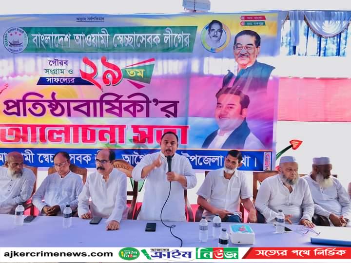 বরিশালের আগৈলঝাড়া উপজেলা স্বেচ্ছাসেবকলীগের প্রতিষ্ঠাবাষির্কী উপলক্ষে জাতীয় ও দলীয় পতাকা উত্তেলন, র্যালী ও আলোচনা সভা অনুষ্ঠিত হয়েছে। ২৭ জুলাই বৃহস্পতিবার সকালে উপজেলা দলীয় কার্যালয়ে জাতীয় ও দলীয় পতাকা উত্তেলন শেষে দলীয় কার্যালয় থেকে র্যালী বের হয়ে বিভিন্ন সড়ক প্রদক্ষিন শেষে দলীয় কার্যালয়ে গিয়ে শেষ হয়। পরে দলীয় কার্যালয় চত্তরে উপজেলা স্বেচ্ছাসেবকলীগের সভাপতি ফিরোজ শিকদারের সভাপতিত্বে দিবসের তাৎপর্য তুলে বক্তব্য রাখেন উপজেলা চেয়ারম্যান মুক্তিযোদ্ধা আব্দুল রইচ সেরিয়াবাত, উপজেলা আওয়ামীলীগে সভাপতি সুনীল কুমার বাড়ৈ, উপজেলা আওয়ামীলীগ সাধারন সম্পাদক আবু সালেহ মোঃ লিটন সেরনিয়াবাত, সহ-সভাপতি এস এম হেমায়েত উদ্দিন,উপজেলা ভাইস চেয়ারম্যান রফিকুল ইসলাম তালুকদার, সাবেক উপজেলা ভাইস চেয়ারম্যান জসীম উদ্দিন সরদার, উপজেলা আওয়ামী লীগ প্রচার ও প্রকাশনা সম্পাদক মোঃ ফরহাদ হোসেন তালুকদার, যুগ্ম সাধারণ সম্পাদক মোঃ সাইদুল সরদার, উপজেলা যুবলীগ সভাপতি কামরুজ্জামান আজাদ সেরনিয়াবাত,সাধারণ সম্পাদক মোঃ শহিদুল ইসলাম তালুকদার, উপজেলা স্বেচ্ছসেবকলীগের সাধারন সম্পাদক গোলাম নবী সেরনিয়াবাত, উপজেলা ছাত্রলীগ সভাপতি মোঃ মিন্টু সেরনিয়াবাত,সাধারণ সম্পাদক মোঃ জাকির হোসেন পাইক, আগৈলঝাড়া উপজেলা প্রেসক্লাবের সাধারণ সম্পাদক বি এম মনির হোসেন, রাজিহার ইউনিয়ন সেচ্ছাসেবকলীগ সভাপতি মোঃ ফখরুল ইসলাম মামুন, সাধারণ সম্পাদক পলাশ কর্মকারসহ সমাবেশে উপজেলা আওয়ামী লীগ, সেচ্ছাসেবকলীগ,শ্রমিকলীগ, যুবলীগ,ছাত্রলীগসহ ইউনিয়ন এবং ওয়ার্ডের সভাপতি সাধারণ সম্পাদকসহ নেতৃবৃন্দরা উপস্থিত ছিলেন।