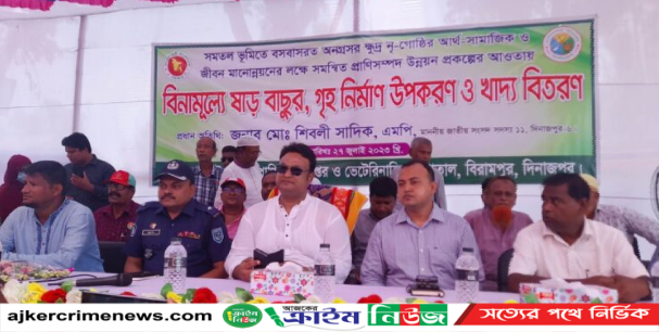 শফিকুল ইসলাম দিনাজপুর জেলা প্রতিনিধি : দিনাজপুরের বিরামপুরে সমতল ভূমিতে বসবাসরত ক্ষুদ্র নৃ-গোষ্ঠী পরিবারের আর্থসামাজিক উন্নয়নের লক্ষ্যে ৭৯টি পরিবারের মাঝে গরুর (ষাড়) বাছুর ও ঔষধ এবং সমাজসেবা অধিদপ্তরের আওতায় দূরারোগ্য ব্যাধিতে আক্রান্ত রোগীদের মাঝে ৫০ হাজার টাকার চেক ও প্রতিবন্ধীদের মাঝে হুইল চেয়ার বিতরণ করেন দিনাজপুর ৬ আসনের সংসদ সদস্য শিবলী সাদিক।