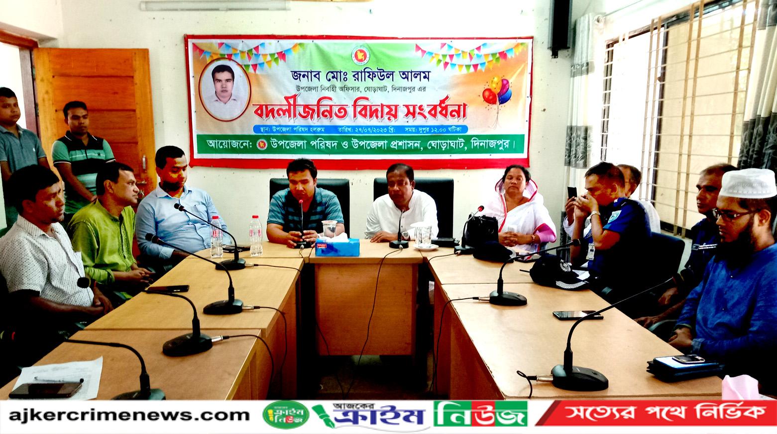 দিনাজপুরের ঘোড়াঘাট উপজেলা নির্বাহী অফিসার মো. রাফিউল আলমকে বদলী জনিত বিদায় সংবর্ধনা দেয়া হয়েছে। বৃহস্পতিবার (২৭ জুলাই) উপজেলা পরিষদ ও উপজেলা প্রশাসনের আয়োজনে এ বিদায় সংবর্ধনা দেয়া হয়।